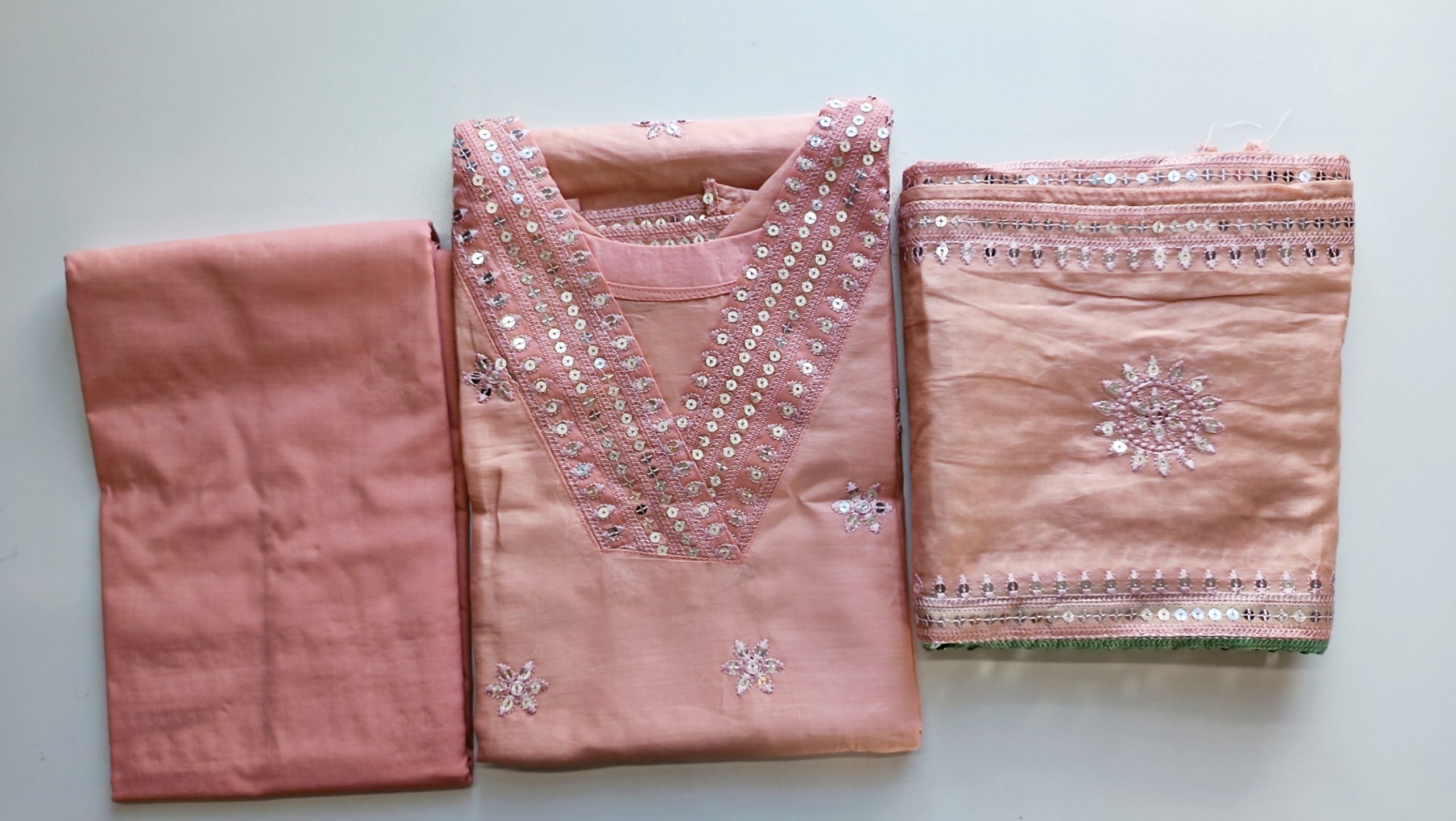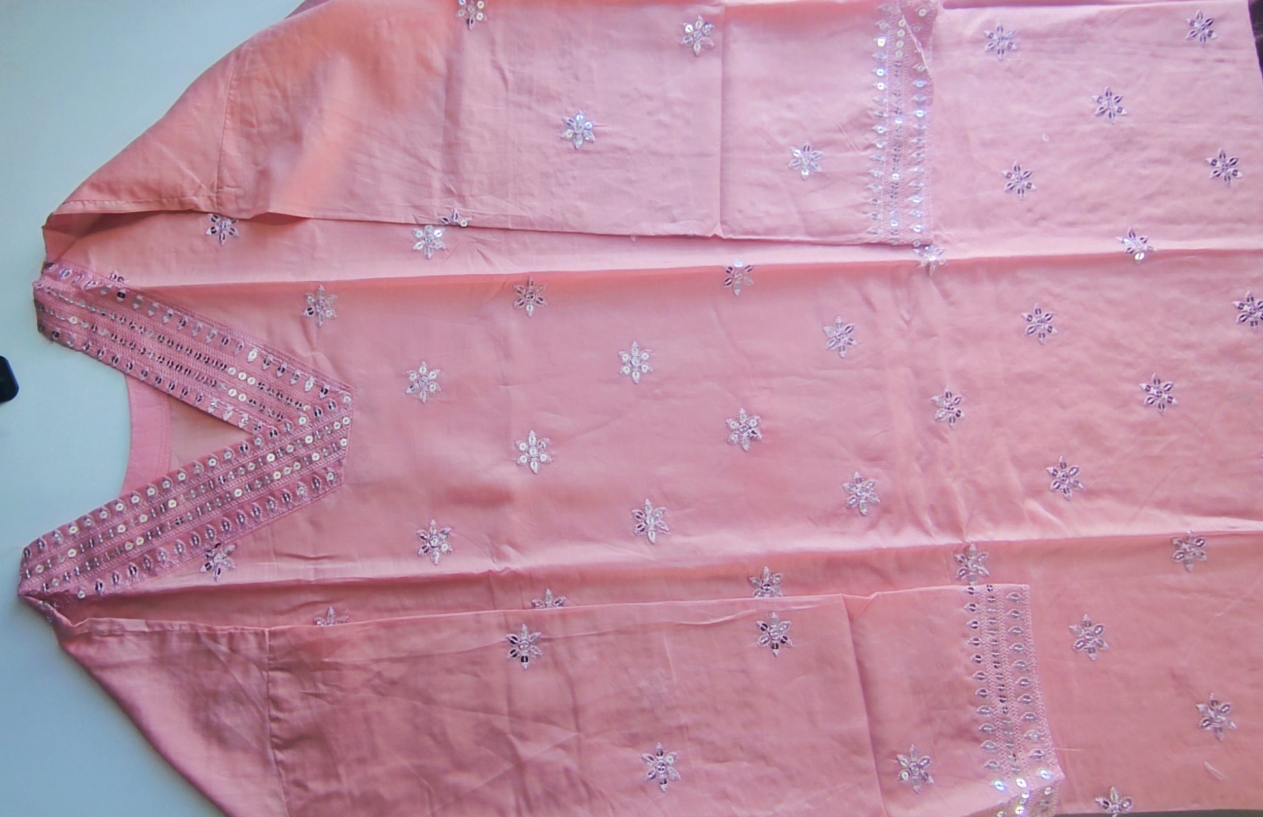 100% Cotton Fabrics Three Piece. Full Body Embroidery & dollar Work. Work Finishing Very Fine. Dress Fabric Very Premium Quality Fabric, Salwar Fabric Cotton. multi colour Veil Extra Large Full Body Embroidered & dollar Work, Side And Sleeve And Bottom dollar work design.