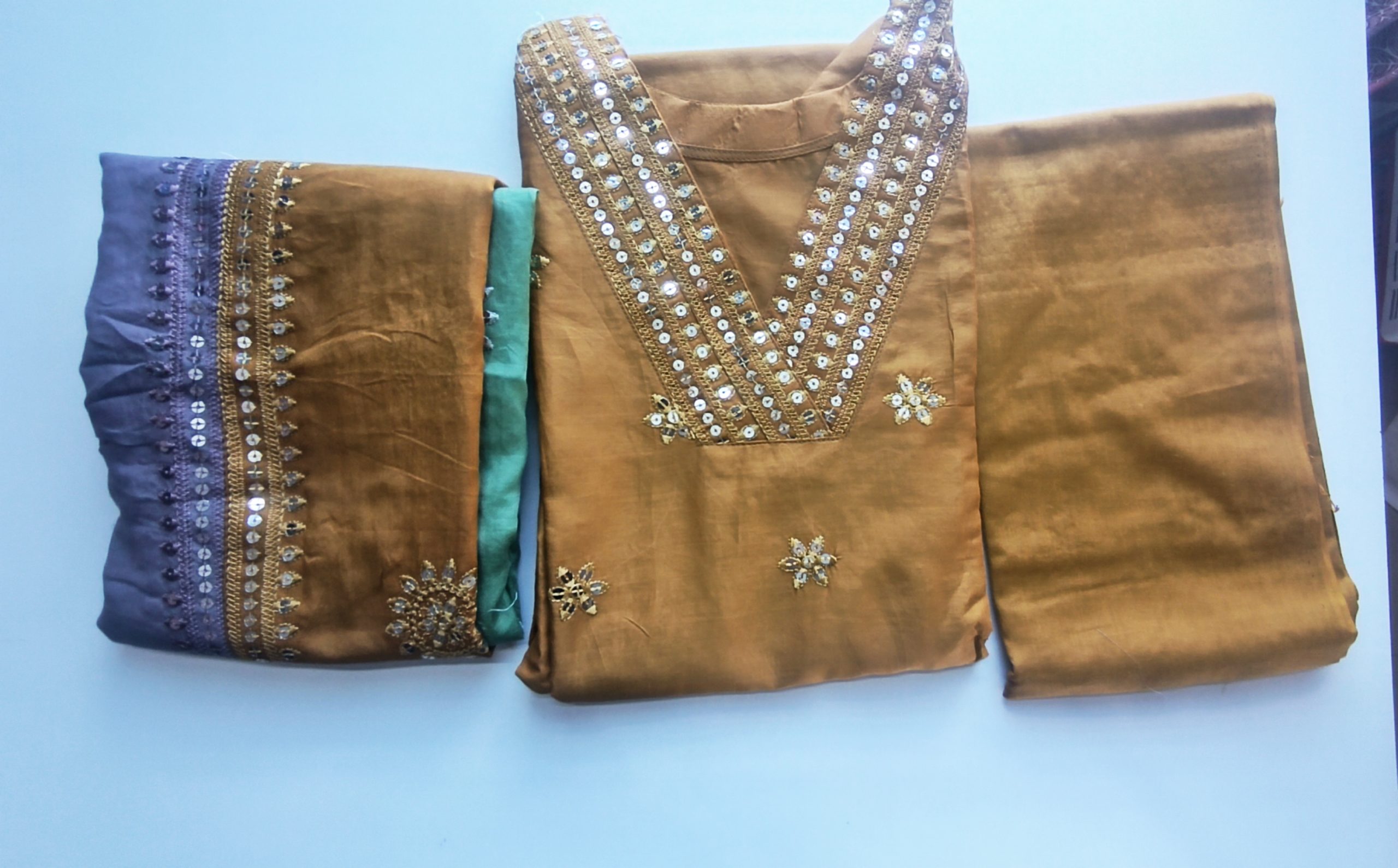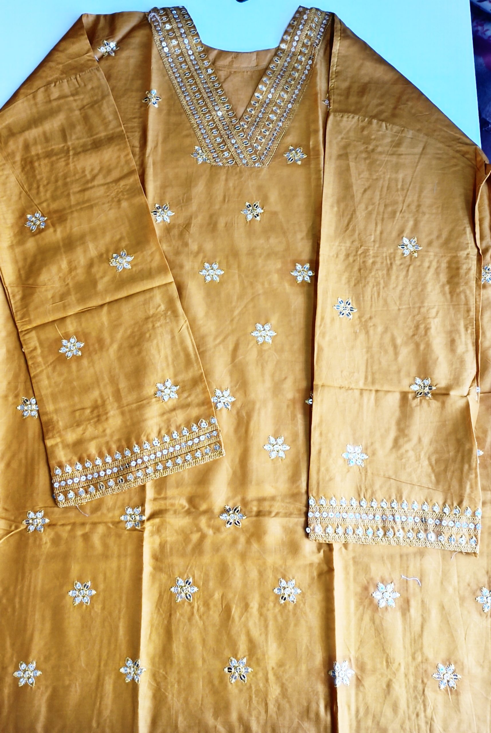 100% Cotton Fabrics Three Piece. Full Body Embroidery & dollar Work. Work Finishing Very Fine. Dress Fabric Very Premium Quality Fabric, Salwar Fabric Cotton. multi colour Veil Extra Large Full Body Embroidered & dollar  Work, Side And Sleeve And Bottom dollar work design.